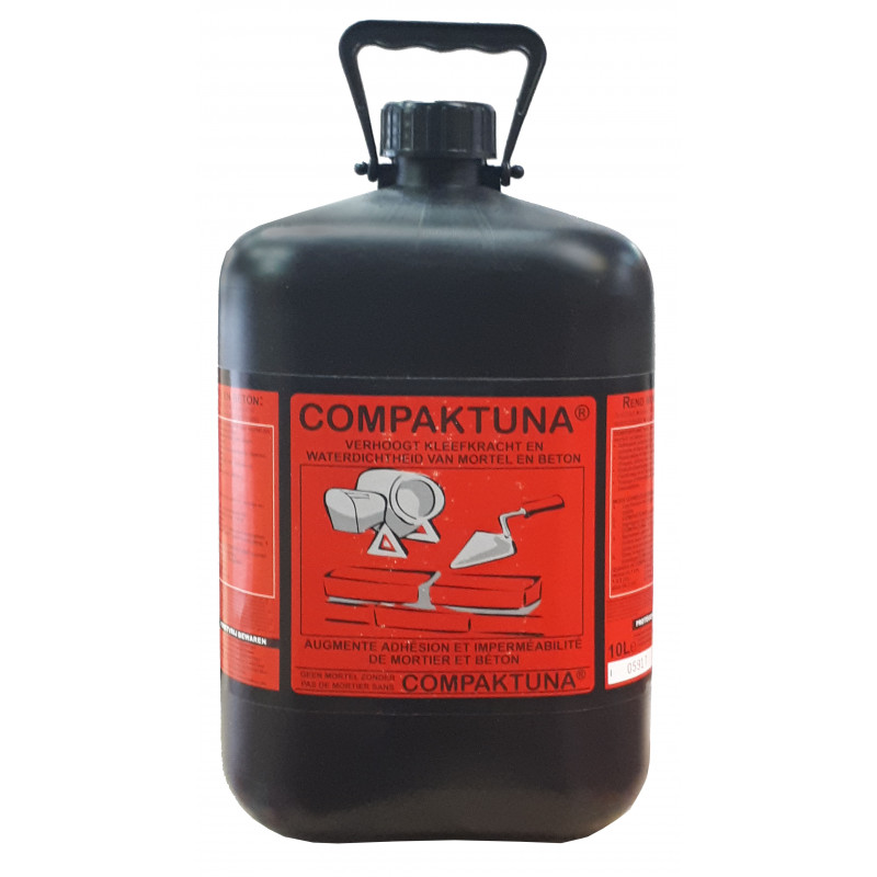 Le COMPAKTUNA® 10 litres est une résine de couleur blanche qui existe depuis 1956, c’est une résine liquide de très haute performance pour les reprises et l’accrochages des matières hydraulique, spécialement composée et utilisée comme liant plastique pour, le béton, ciment, chaux, plâtre, etc.